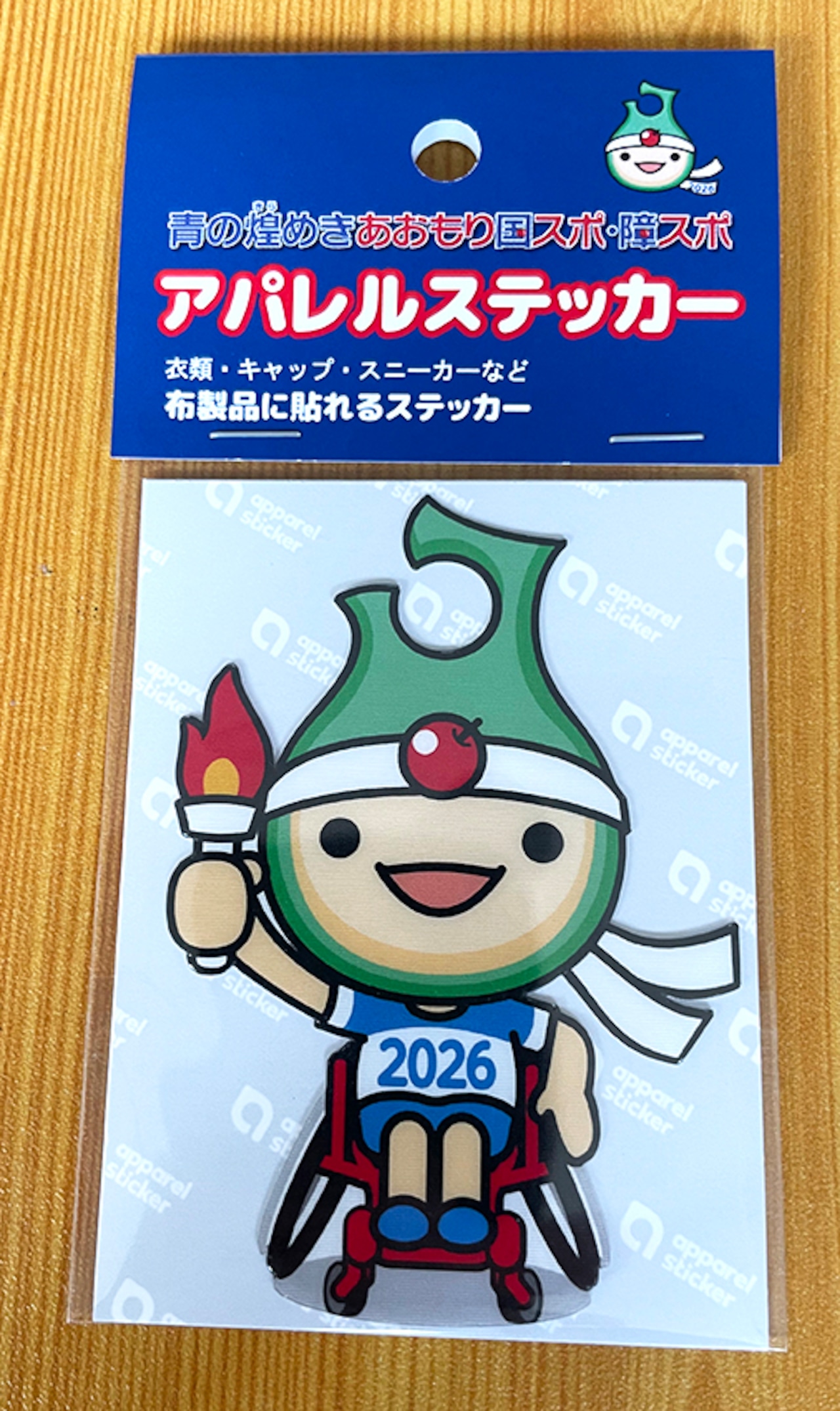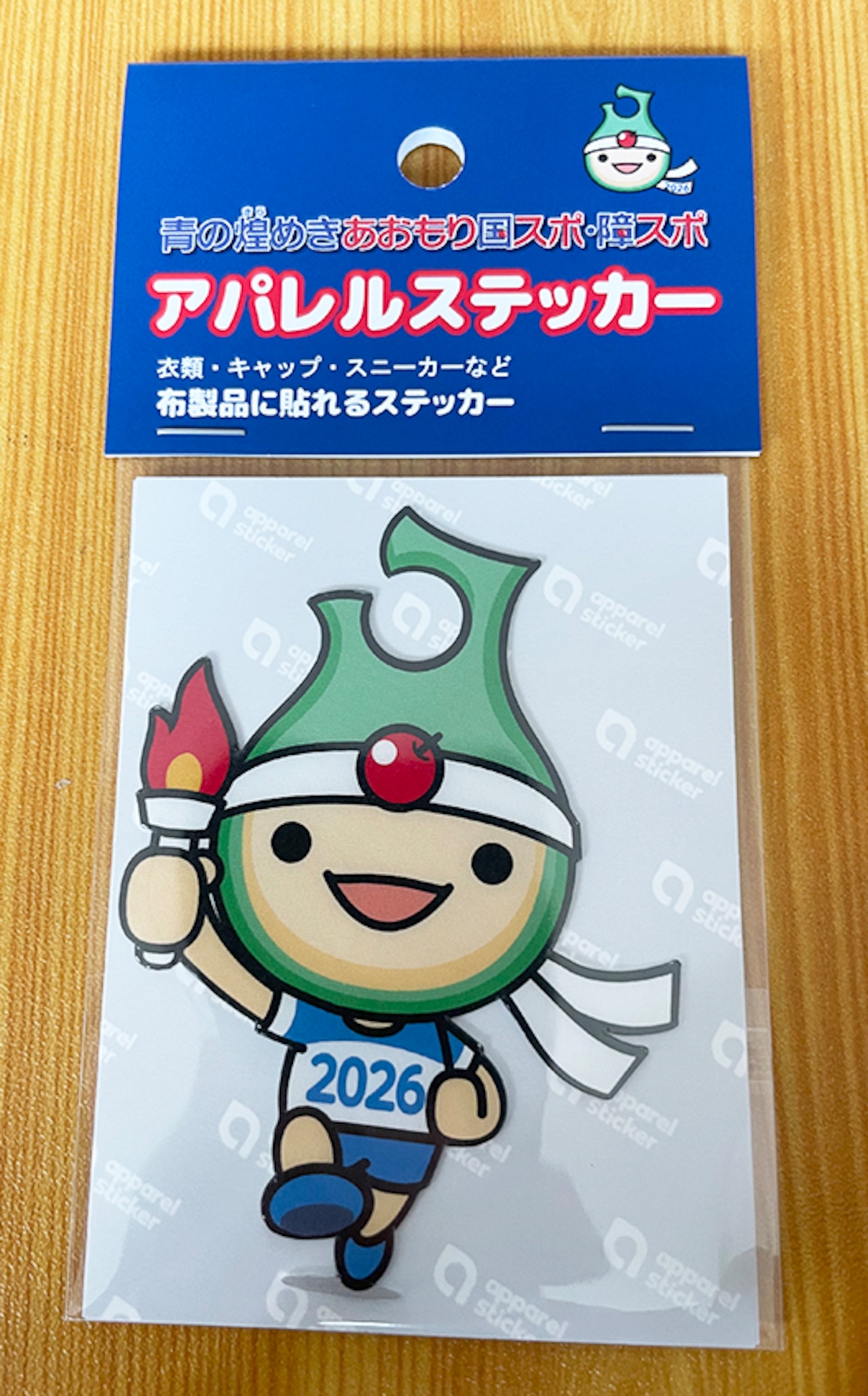 あおもり国スポのマスコットキャラクター「アップリートくん」のアパレルステッカーです。