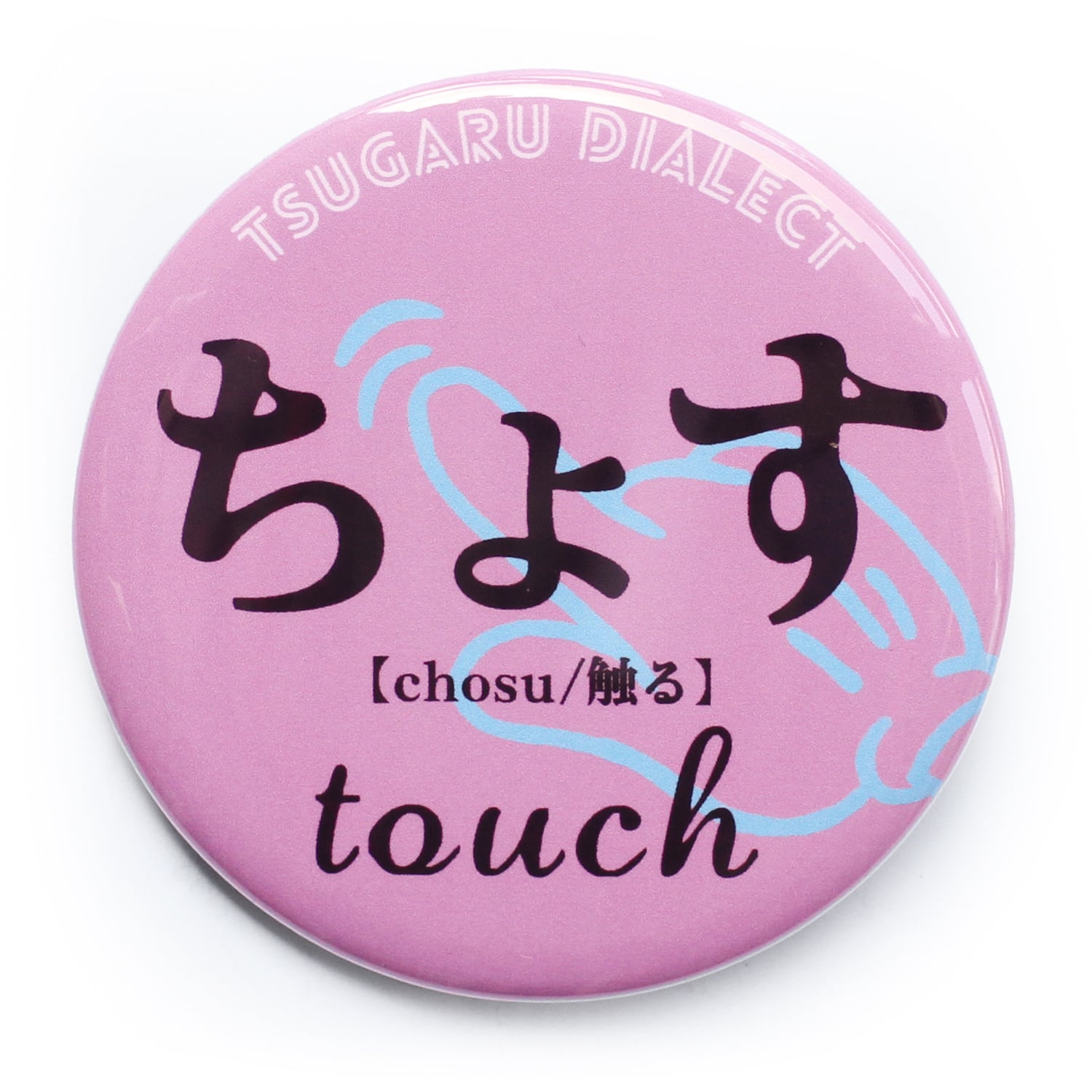 津軽弁を標準語と英語に訳したバッジです。